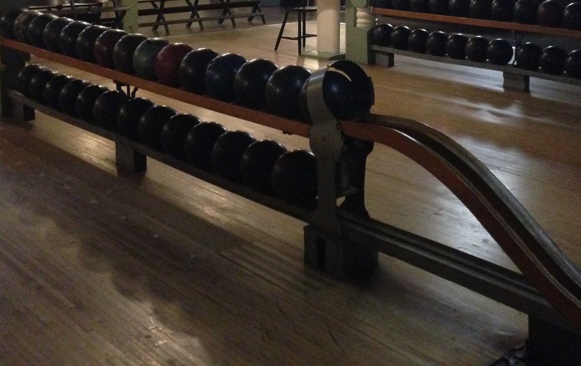 Afterward, we went to the upper floor of the playhouse for ice cream. Again, we were spellbound by our surroundings: a soda fountain and candy counter, an ancient movie-house film projector that stood about four-feet tall, and a bowling alley, all of it looked like something out of a Frank Capra classic. The woodwork of the bowling alley, its lanes and ball racks, were works of art. The light fixtures, the floors… It was not hard to imagine what this place looked like in its prime. All you had to do was open your eyes and glance around. I started to wonder if we’d ever get back to 2013 without a flux capacitor.