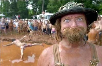 The ground was thick with mud, the kind that sucks your shoes off when you walk through it. Drunken revelers staggered all over the place and the smell of pot wafted from every direction.